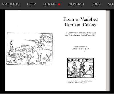 So, here's the public domain book: From a Vanished German Colony: Folklore, Folktales and Proverbs from Southwest Africa by Odette St. Lys, published in 1916.